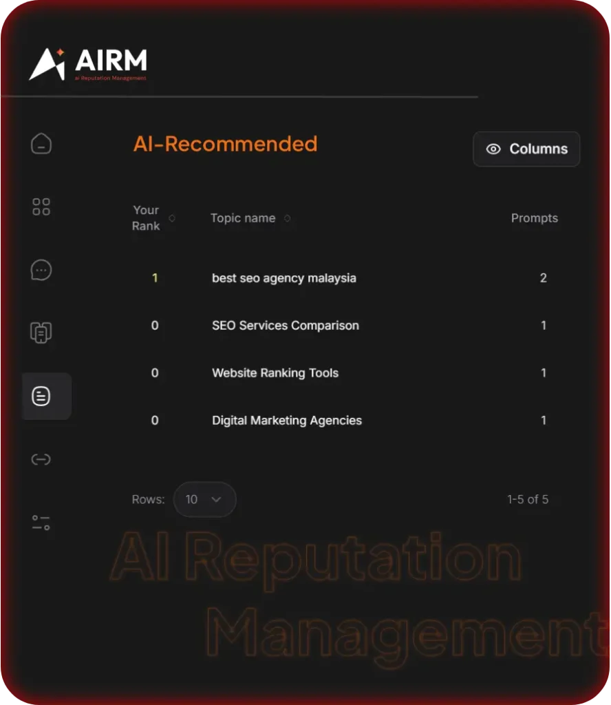 The brands mentioned in these AI-generated answers are the ones that gain trust—and drive business. Most companies don’t know how AI sees them. AIRM changes that.